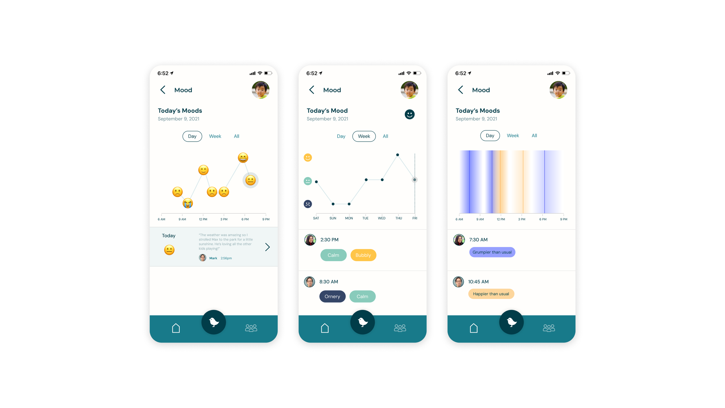 The app captures not only biometric data, but encourages caregivers to include qualitative updates, such as a child’s mood. But how does one capture a mood? Is it a gradient? An emoji? Below are some of our experiments in capturing and tracking moods.