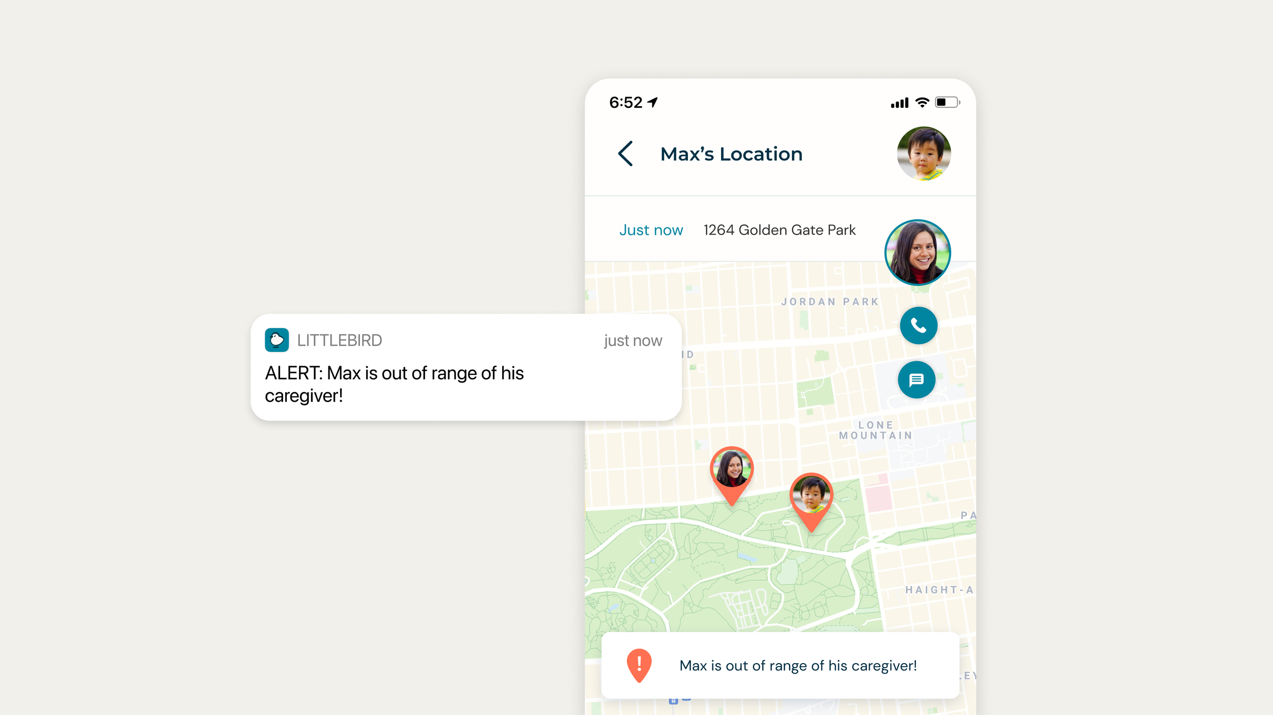 In-app banners and push notifications alert caregivers and parents alike of their child’s whereabouts, removing the stressful guesswork from zoo and grocery outings.